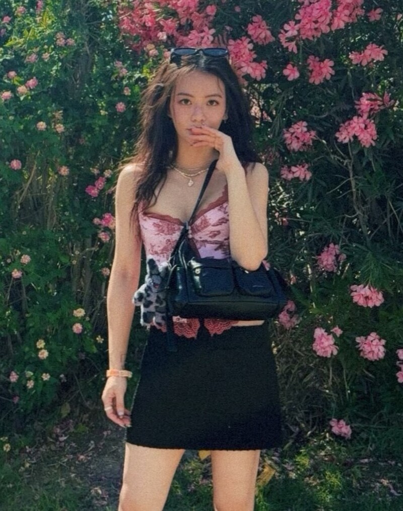宋芸樺在今年中參加了美國的Coachella音樂節,曬出一系列的夏季甜美造型,在這身造型中她就搭配了韓國品牌Samo Ondoh的黑色多口袋肩背包,亮澤的皮革質感,簡單卻俐落的輪廓中和了蕾絲背心與迷你裙的少女感,多了一點酷帥氛圍。直達官網