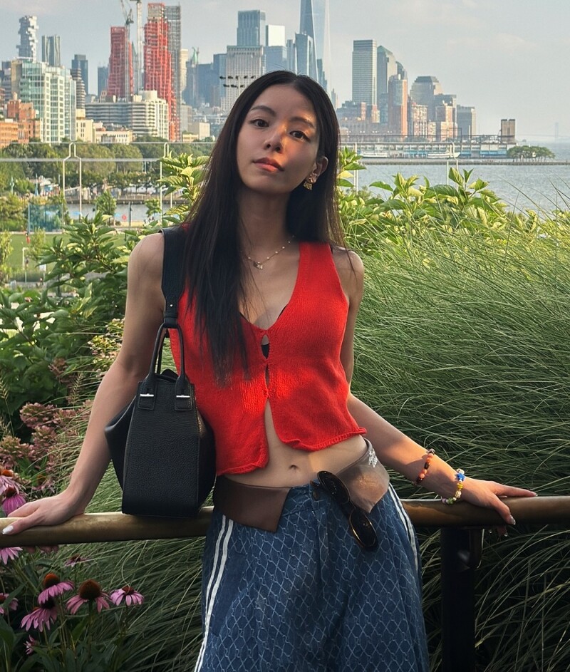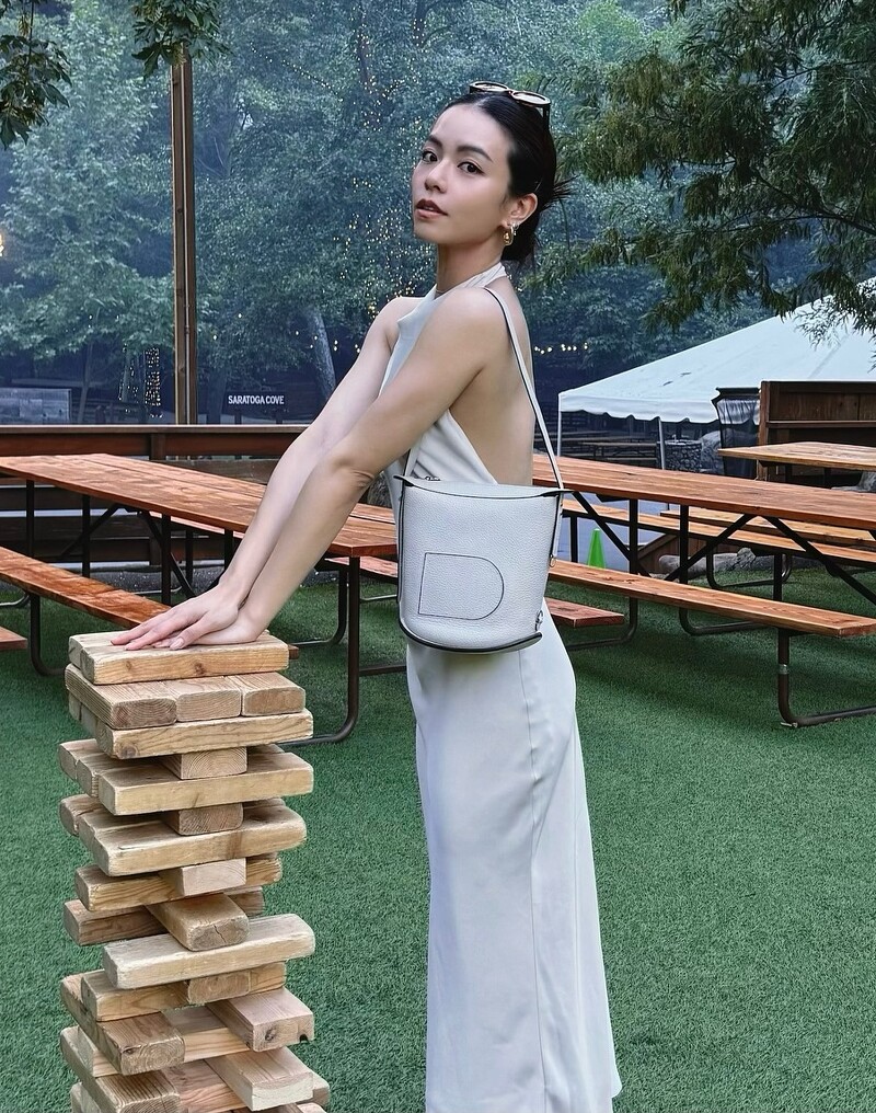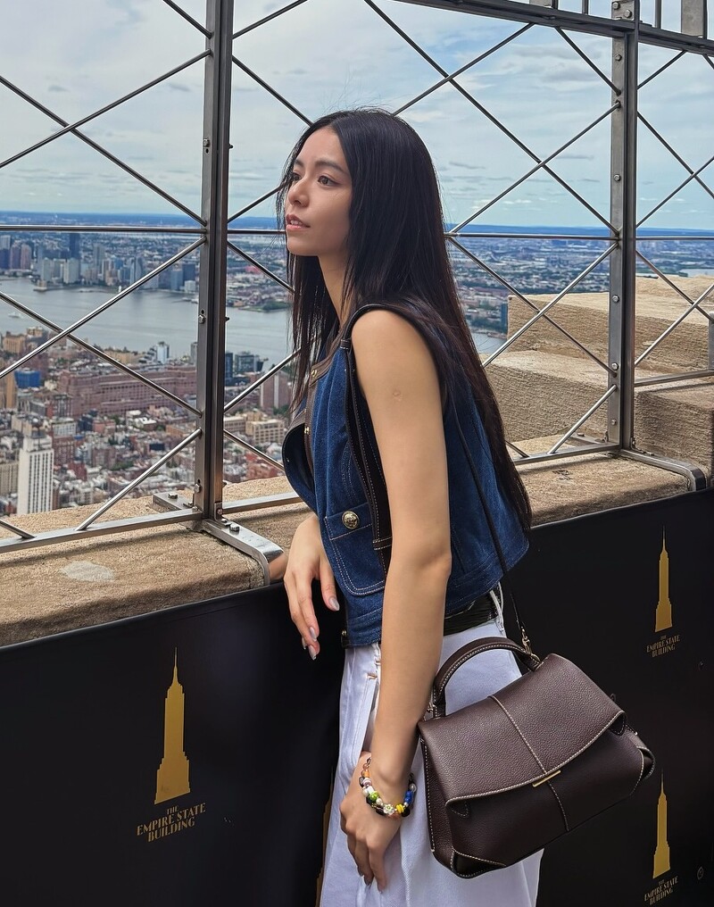 在宋芸樺早先的紐約行時,登上帝國大廈的造型,宋芸樺選擇的是法國設計品牌Polène的Mokki深褐色皮革肩包,Polène的包款近年是許多時尚穿搭博主的愛用品牌之一,包型以柔和線條與雕塑感輪廓而受到歡迎,她選擇的Mokki包款簡潔耐看,搭配丹寧背心與白褲,展現了美式的休閒都會感的風格。直達官網