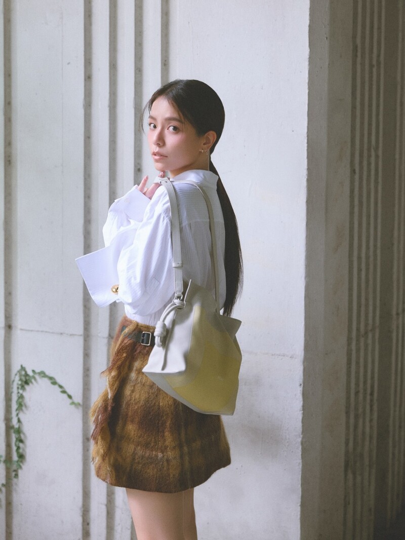換上一身白色洋裝時,宋芸樺她選擇的是比利時殿堂級精品Delvaux的經典Pin Twist白色水桶包,這款包最大的魅力來自它「三條背帶、數十種背法」的多變設計,不僅既能肩背、斜背,也能變成手拿包,設計乾淨俐落,搭配她極簡的穿搭,輕鬆展現不費力的優雅感,韓星孔曉振也是這款包愛用者之一。直達官網