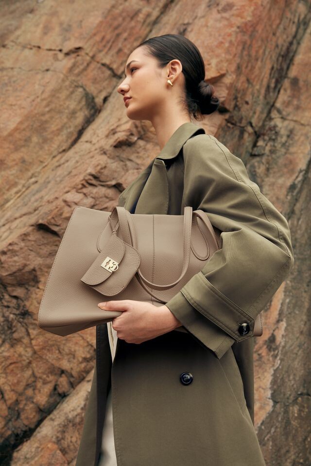 除了全新 Basalt 系列,Cafuné 亦為經典包款注入嶄新色彩。人氣 Day Tote 推出全新奶杏色,以柔和中性色調平衡俐落輪廓,為職場穿搭增添溫潤優雅。包款選用義大利高級頭層荔枝紋牛皮,柔軟卻挺括,內部空間寬敞,能輕鬆收納筆電與日常隨身物件。隨包附贈的可拆卸 C-Lock 卡夾吊飾,兼具美感與實用性,細節之處展現品牌匠心。