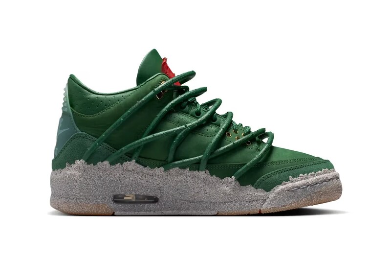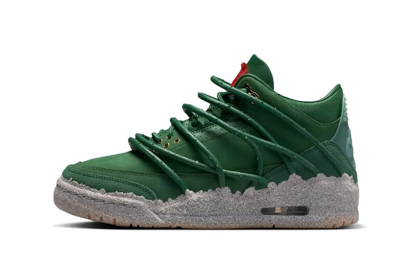 延續其過往鞋履創作所建立的視覺風格,「Concrete Rose」以象徵性花卉意象為核心,將個人故事轉化為細膩的設計敘事。鞋身選用低調霧面的深綠色皮革覆蓋,營造沉穩且極具搭配彈性的整體氣質;與之形成對比的,是帶有仿混凝土紋理質感的中底設計,象徵在壓力與現實環境之中依然綻放的生命力。在保留經典 Air Jordan 3 輪廓的前提下,設計並未走向張揚,而是透過精緻細節慢慢鋪陳主題。鞋身點綴低調玫瑰 元素與金色金屬細節,使整體視覺更具層次。翻至後跟,標誌性的 Nike Air Logo 醒目呈現,讓這雙作品在創新與品牌傳承之間取得平衡。最後,更具故事性的細節則藏於鞋內。內襯印有「The World Is Different Here」與「Rose From Concrete」手寫字樣,呼應 Taylor 的人生軌跡;鞋墊鋪陳繁複玫瑰花瓣圖騰,延續整體敘事。鞋款並搭配特製金色鞋盒與玫瑰展示開窗設計,將開箱體驗也納入設計的一部分!