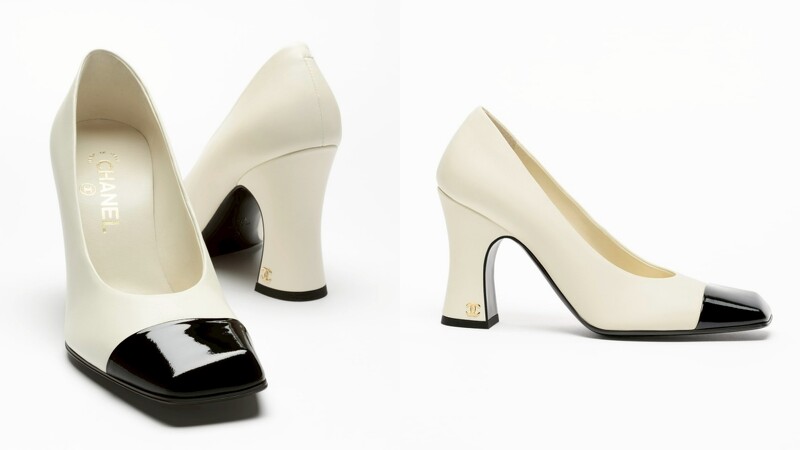 新的方頭雙色高跟鞋在保留拼色元素的同時,也加入更現代的細節,像是亮面漆皮鞋頭、俐落的方頭輪廓以及穩定的粗跟比例,整體看起來就像是Chanel經典雙色鞋的當代版本。