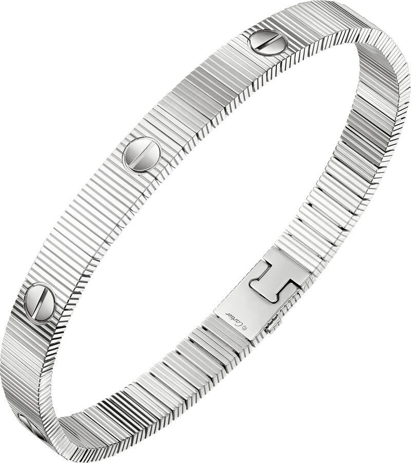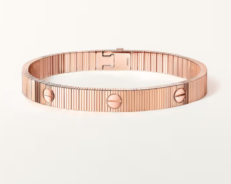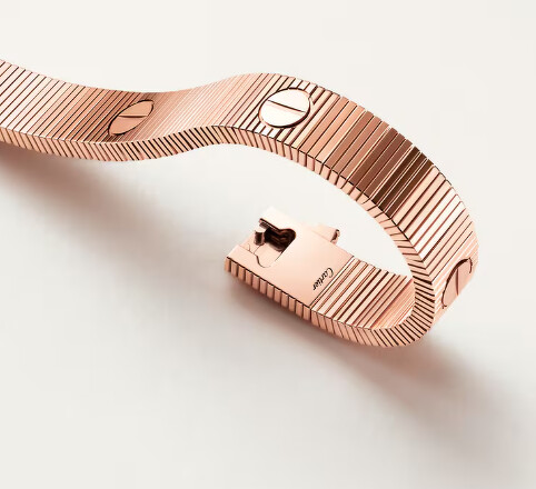 1969年,紐約——Aldo Cipullo的大膽構想:純金打造的兩個半圓,以螺絲鎖成一個完整的橢圓硬式手環。風靡市場的卡地亞Love手環於焉誕生。爾後衍生戒指、項鍊及耳環等品項完整了系列。那款象徵堅定不移的愛情手環,如今以新創樣貌呈現更具包容力的敘事情境。助益於精巧工藝手法,以200枚金質部件,一點一滴、婉約串聯,藉此打造出觸感細膩的柔軟環圈手鍊「LOVE Unlimited」,細節處更不見切割痕跡或鍊節斷點。更特別的是,其搭扣設計得以讓不同手環扣起相容,宛如金質緞帶般完美靈動,既象徵無限延伸、蛻變,也讓示愛與風格並行!首波推出黃K、白K、玫瑰金材質手環,同步曝光的戒指,則是運用直紋雕刻圖騰以詮釋新版設計特色。