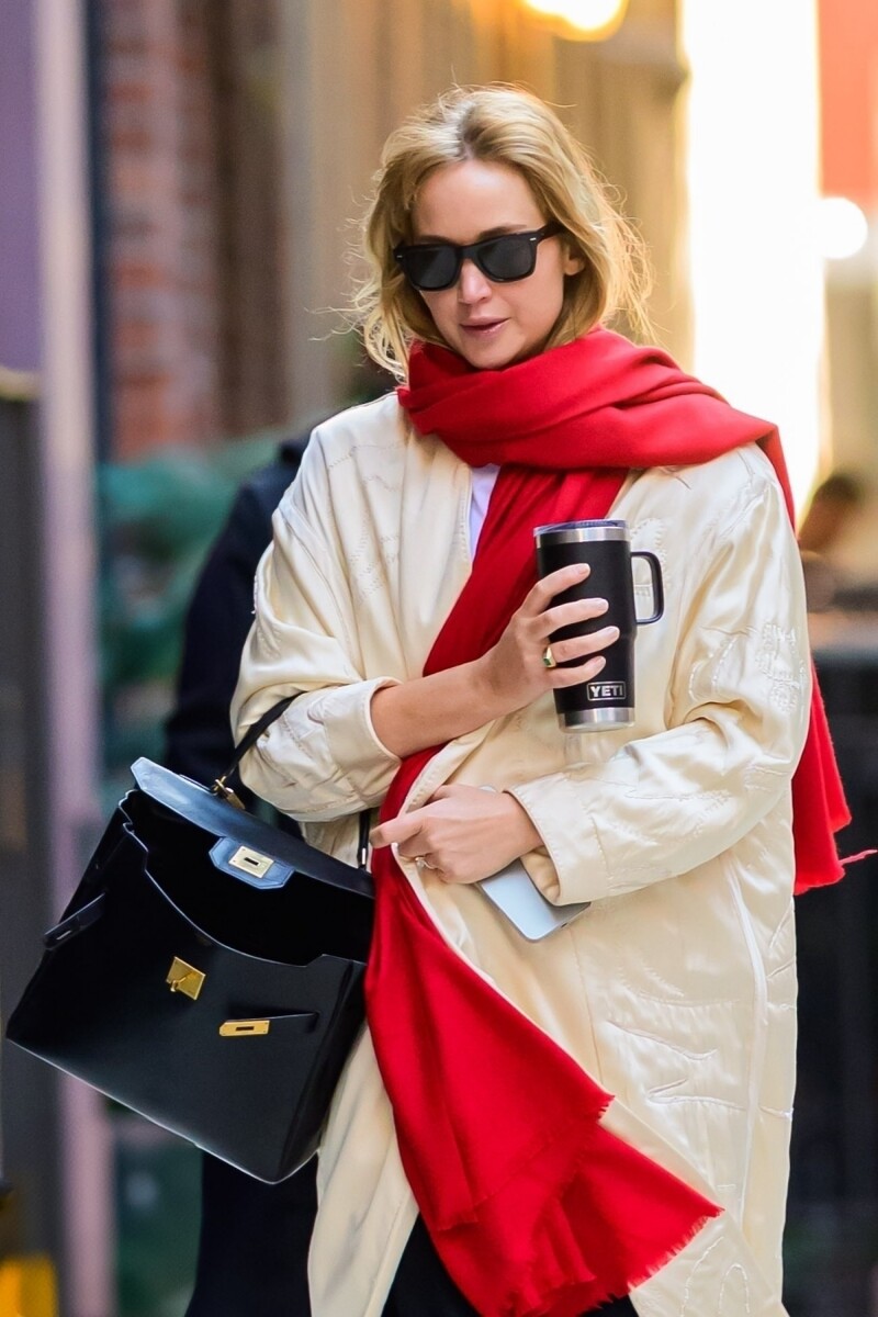 珍妮佛勞倫斯私下打扮一向低調,近幾次出門時被拍攝到,無論是米黃色的風衣造型、皮衣或皮革西裝外套,在這些不同風格的穿搭之下,他都搭配著同一款愛馬仕黑色凱莉包,仔細看看這款包似乎也與現在專賣店上的凱莉包略有不同,原來珍妮佛勞倫斯選擇的是復古款的「Kelly Monaco」。