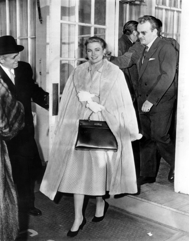 以摩納哥王妃葛蕾絲凱莉命名的愛馬仕凱莉包,起源可追溯至1852年,原型是為攜帶騎士靴子和馬鞍設計的Haut à Courroies包款,1930年代由Robert Dumas重新設計為並命名為Sac à Dépêches,而1955年,葛蕾絲凱莉在電影《捉賊記》(To Catch a Thief)的片場以凱莉包遮擋孕肚的照片登上雜誌封面後,讓凱莉包一躍成為優雅的象徵,隨後在1977年愛馬仕徵得摩納哥王室同意後,將款包正式命名為「凱莉」(Kelly),而珍妮佛勞倫斯手上拎的這個復古版凱莉包就是源自當時的設計。