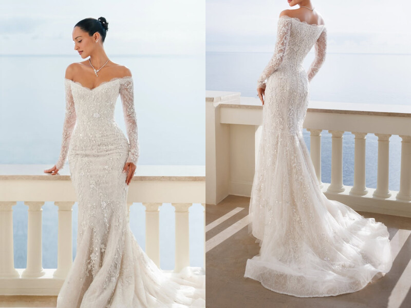 Alexandra Saint Mleux現已將Instagram帳號名稱改為Alexandra Leclerc,向全世界宣告正式成為Charles Leclerc的妻子。婚禮上Alexandra由澳洲設計師品牌Paolo Sebastian訂製的婚紗,以浪漫、童話風格聞名的Paolo Sebastian,將高超的訂製工藝隱藏在了這件白紗當中,扇形露肩領口、長袖和修身胸衣詮釋法式優雅風格,細節處則能看見精緻的蝴蝶刺繡,一路延伸到拖曳的魚尾裙襬。