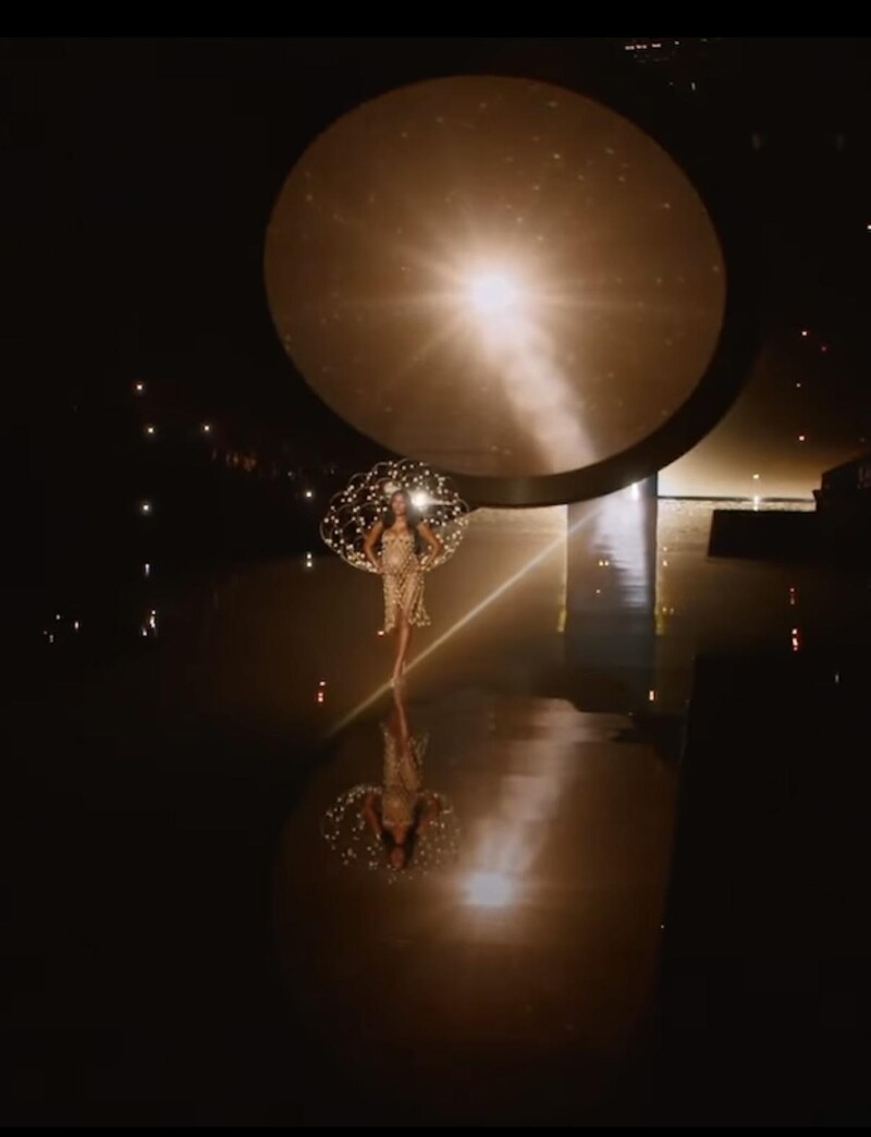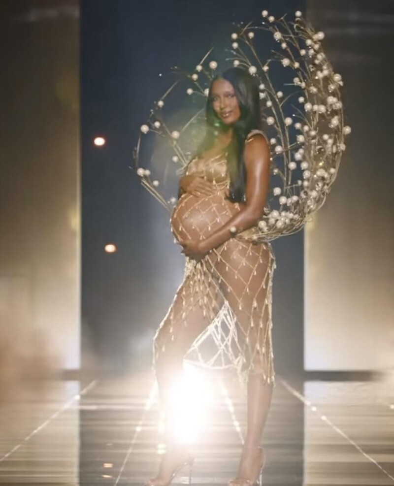 2025年Victoria’s Secret大秀的開場也非常令人震撼,當維密天使 Jasmine Tookes以懷孕九個月的狀態,挺著孕肚走上舞台,穿著閃耀的金絲禮服、金絲貝殼羽翼,背後如星雲般綻放光芒。這一刻不只是令人動容的美麗,更是對女性力量的禮讚。Jasmine Tookes用最柔軟的姿態詮釋最堅定的美,讓性感不再局限於身材的線條,而是延伸為一種生命力的存在。Jasmine Tookes的登場,是對「母親也能是超模」最有力的宣言,同時也改寫了伸展台的定義。