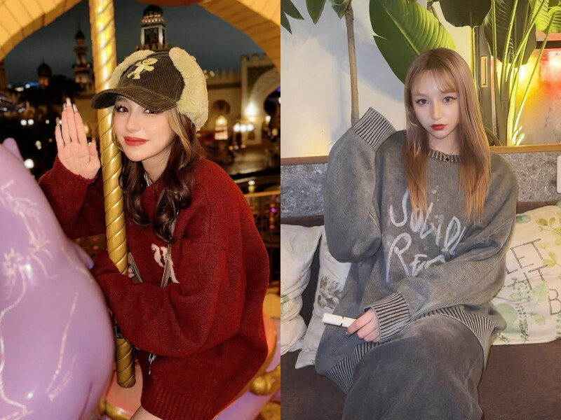 北鼻在穿著上也樂於嘗試多元色系,甜美的紅、粉、紫色系則是她的心頭好,當穿上寬鬆柔軟的針織衫單品,立刻削弱了小混混的不良感,搭配上毛絨絨材質的棒球飛行帽,連眼神都變得無辜了起來!