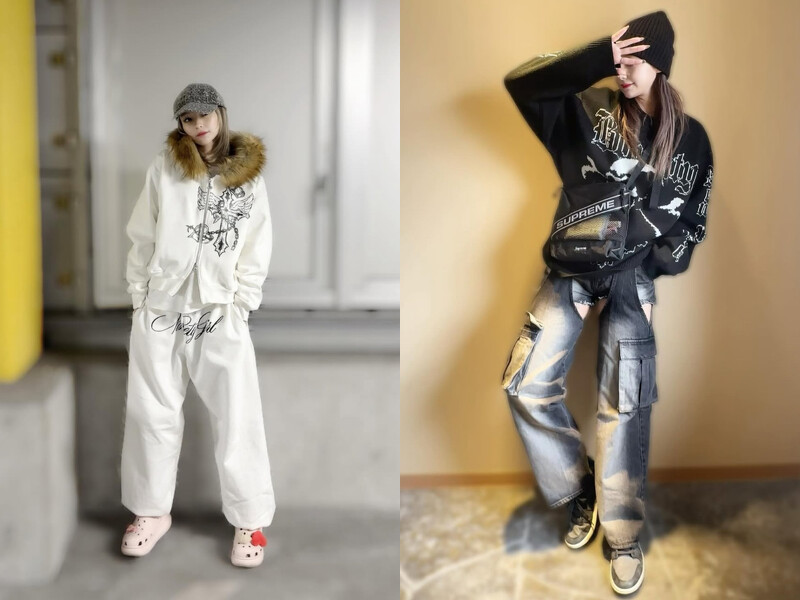 北鼻的穿衣風格並不會刻意凸顯身材,日常她喜歡寬鬆的潮牌連帽衫、棉質運動套裝……方便又舒適,隨時都能進行油漆工作或是外出;加入些哥德文字、圖案風格的設計,也是她的喜好之一,讓帥氣街頭感立刻拉滿!