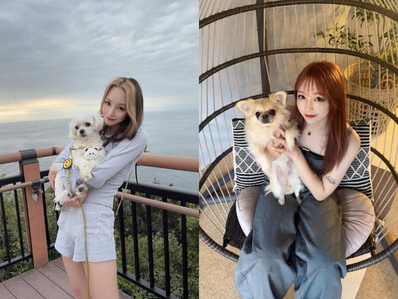 北鼻曾在節目上提到,把飼養的兩隻狗狗視為家人對待,只要是與狗狗的合照,北鼻都顯得格外溫柔!