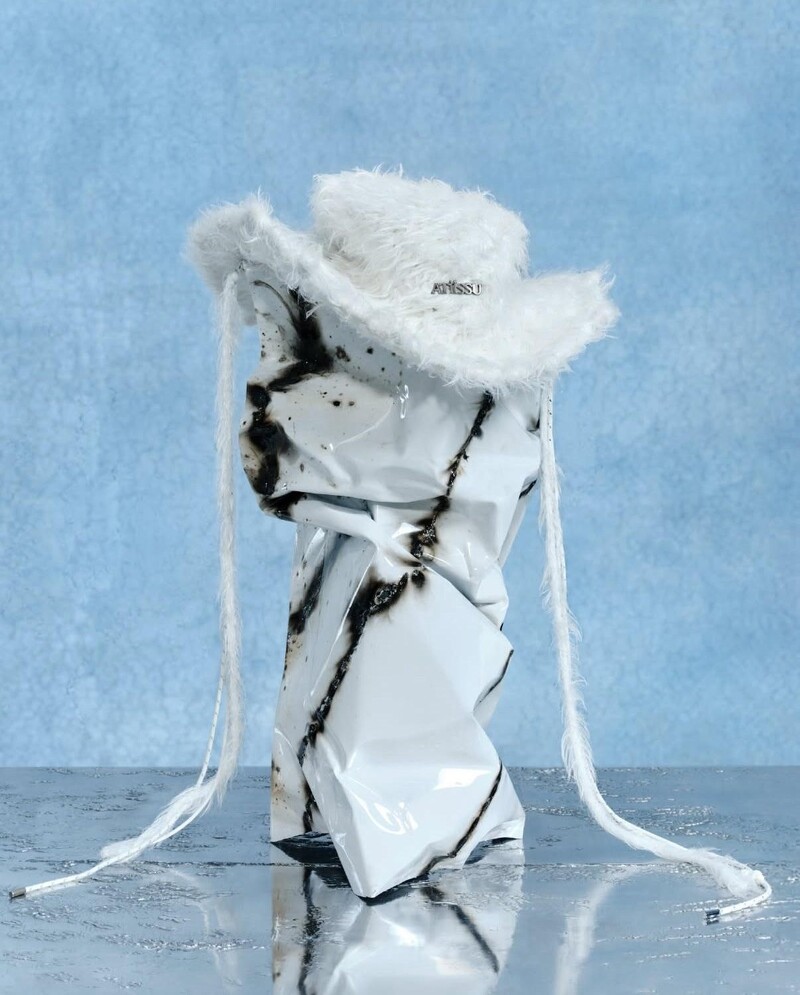 ATiiSSU將西部風牛仔帽鋪上滿滿的絨毛,上翹的帽簷配上雜亂無章的毛流,凸顯率性瀟灑的氣場,兩側的毛線裝飾則是ATiiSSU的標誌性設計,整體外形較為中性,男生也可以放心挑戰。