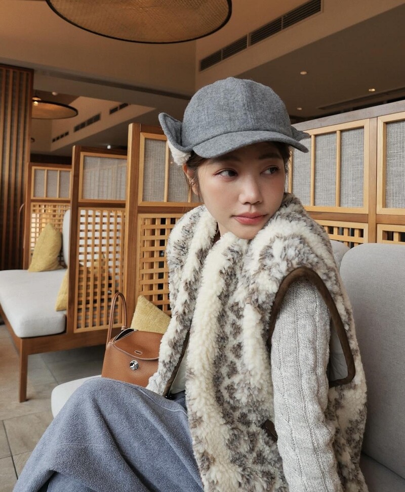 毛背心搭配牛仔褲,看氣來是一套偏成熟的組合。但許路兒選擇一件短版毛背心,讓上半身比例更輕,視覺感的重心也跟著上移,最後,再加上一顆動物紋的麂皮包讓整體造型更加完整,時髦有型。青春儲值點: 用「短版+蓬軟材質」對抗冬季厚重感,也讓層次變得輕盈。