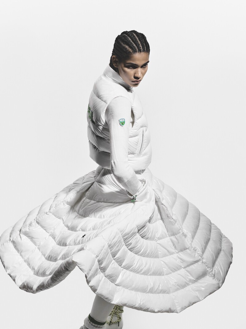 身為2026冬奧的地主,義大利代表團再次由時尚教父 Giorgio Armani旗下的 運動主力品牌Emporio Armani (EA7) 傾心打造,且本次作品更被視為是Giorgio Armani生前參與製作的最後一次奧運隊服,備受各界關注。設計延續了品牌一貫的優雅與簡約,純白色基調裡加入義大利國旗色彩綠色、紅色線條,服裝結構俐落,沒有過多的綴飾,僅透過高品質的面料與極致的剪裁展現出義式美學,簡單有力。