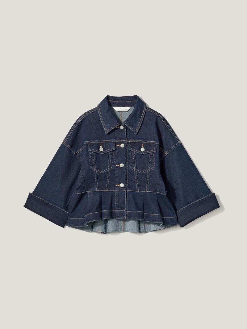 本季聯名推出一款丹寧套裝,其中短版外套編輯推薦必敗,下擺的荷葉設計直接戳中少女心,還能凸顯腰身,製造出大長腿的錯覺!可反摺設計的寬版袖口則能營造一種帥氣,搭配上系列中的氣球褲,時髦到不行。
