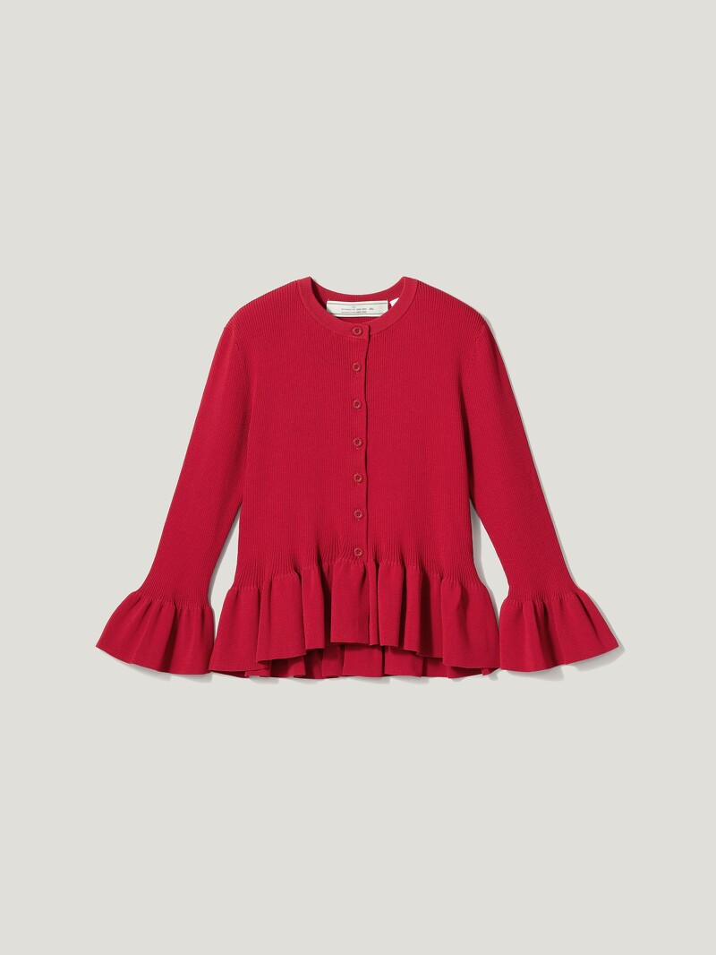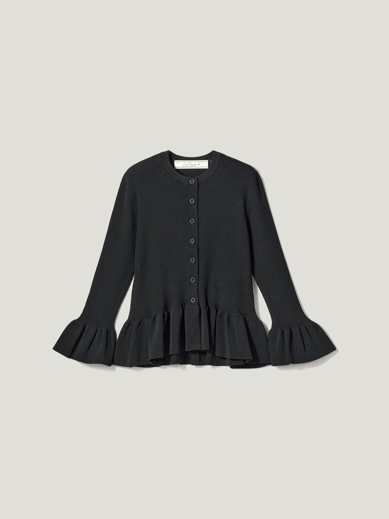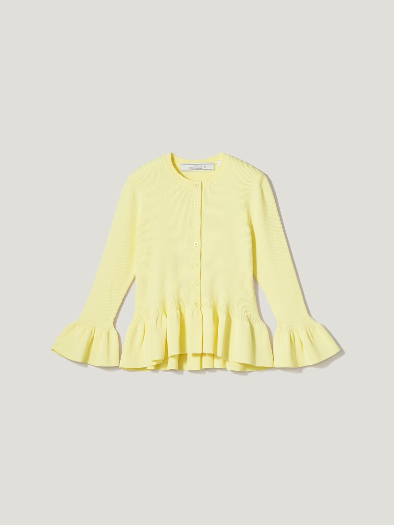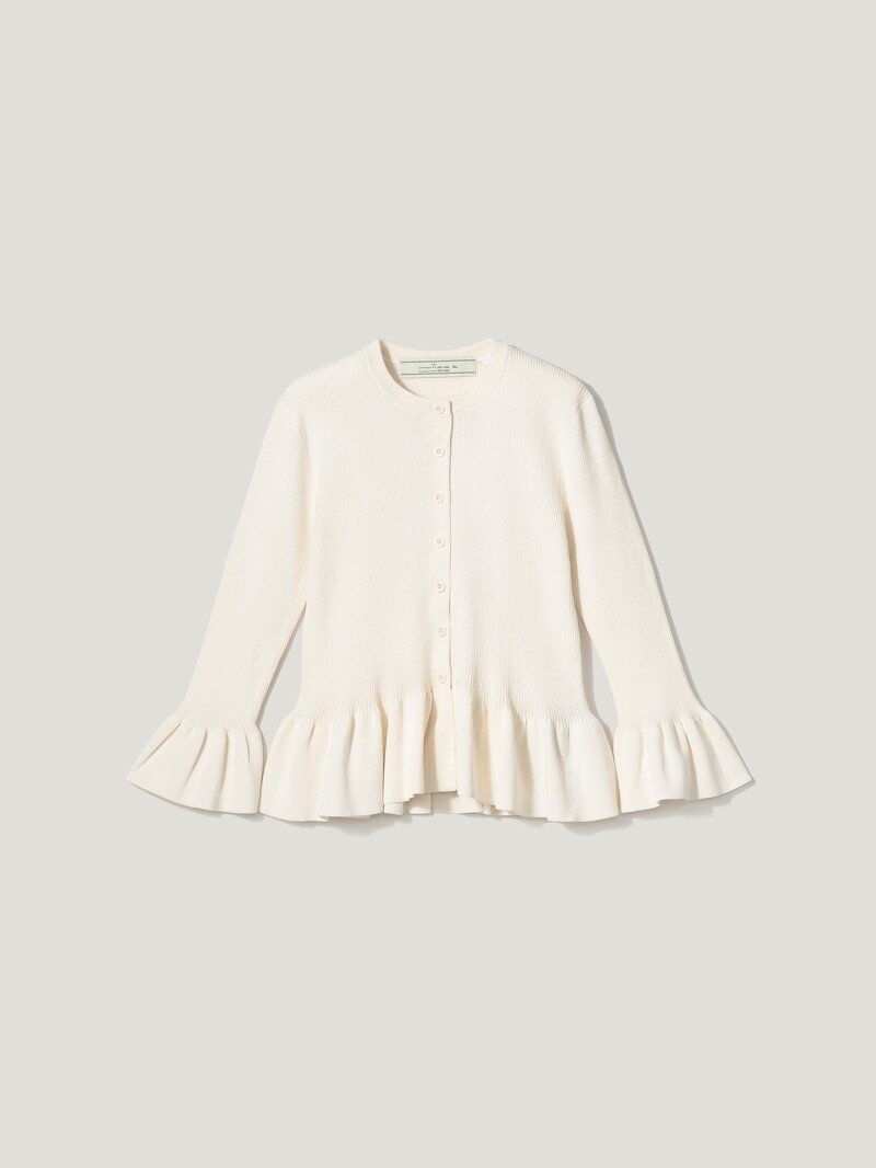 基礎的開襟針織外套,在經過ROKH的巧手改造後,於袖口、下擺點綴荷葉邊,帶來宮廷風格的優雅氣息,不僅能作為夏日必備的小外套、披肩,扣上釦子也可作為上衣單穿,自然垂墜打造的收腰線條,能使視覺看來更加修長。