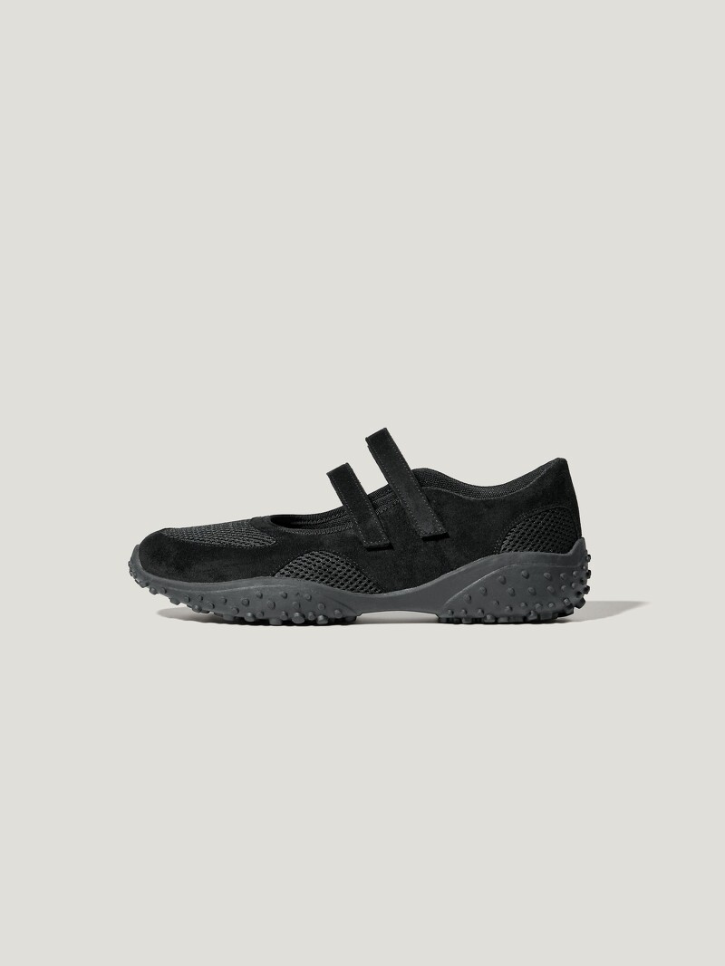 說到運動風瑪莉珍鞋,可說是GU的強項。本季GU x ROKH聯名帶來一雙雙繫帶設計的芭蕾運動鞋,使用杯形鞋墊與柔軟的緩衝材質,注重足部舒適度,並藉由溫柔芭蕾與個性化的碰撞,呼應整體的風格。而它必敗的原因在於,其延伸向上的鞋底設計,既提升機能外觀、也是特別可愛的關鍵。