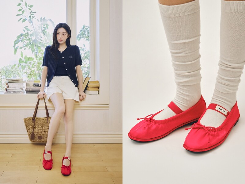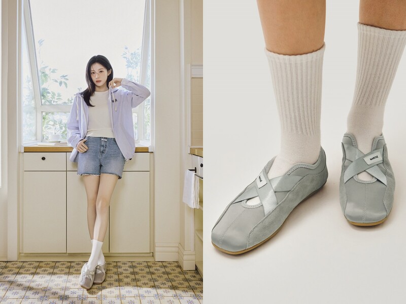 高允貞這回也示範了另一雙休閒鞋款,流線型的薄底運動鞋輪廓,以交叉的運動風織帶設計,結合芭蕾舞鞋的溫柔概念,像高允貞這樣搭配一雙白襪,即能獲得輕盈的視覺感受,青春洋溢的少女感立刻Get。
