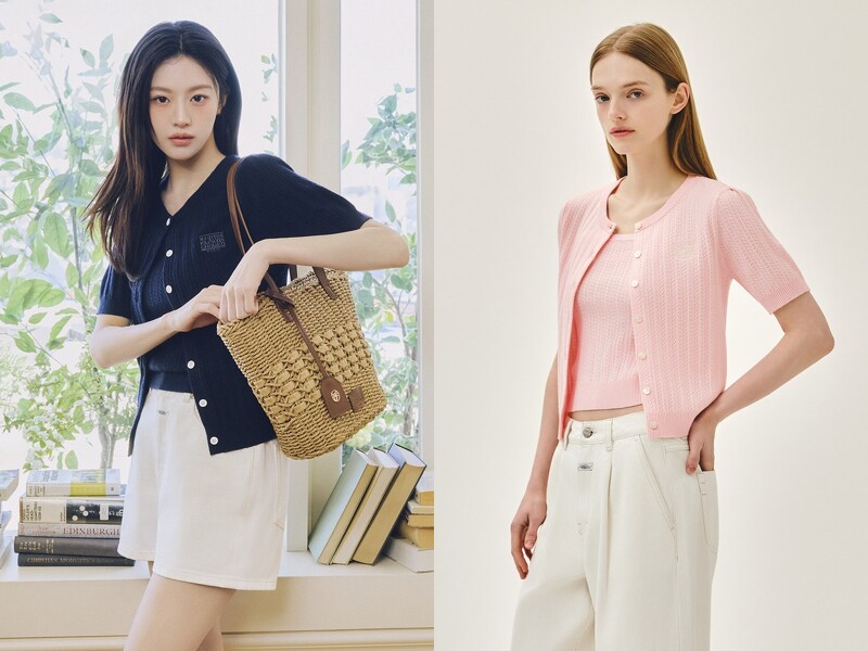 這套針織套裝完全寫著高允貞的名字!輕鬆寫意之中有著精緻的法式優雅,它是短袖開襟衫與內搭小背心一組的設計,外層採用泡泡袖輪廓作為亮點,麻花織紋與細小的鏤空則模擬出蕾絲般的浪漫特質。