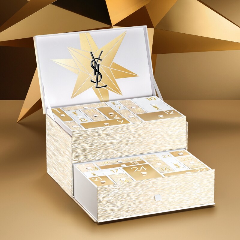 YSL 2025年首度打造「雙層抽屜式」的聖誕倒數月曆。內容物拿出來使用完之後,禮盒還可以當作收納盒再利用。