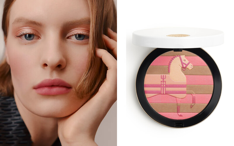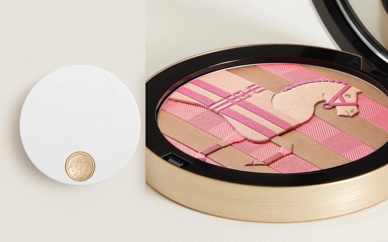 Rocabar 駿馬限量蜜粉餅靈感來自 Hermès 經典的藍紅條紋賽馬毯,這個圖案早在 1920 年代就出現,原本是為賽馬打造的馬披毯,後來變成品牌的代表設計之一,香氛、絲巾到包包都能看到它的身影。