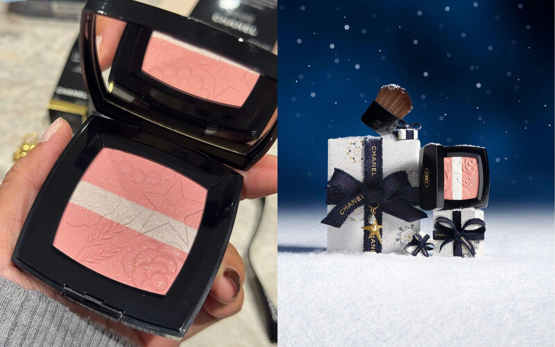 靈感來自星辰閃耀的光芒,香奈兒璀璨星辰頰彩盤絕對是今年聖誕最夢幻的重點單品!一盤結合腮紅、打亮雙重用途,輕刷就能讓臉龐透出絲緞般的柔和光采,這次聖誕系列推出了兩款限量色 #997 玫瑰、#998 蜜桃,#997玫瑰柔美的淺桃粉腮紅搭配珠光白打亮,讓臉頰閃出自然光澤,像被星光親吻一樣;#998蜜桃杏桃色腮紅與白金燦打亮完美融合,妝感溫暖又有氣色,超適合節慶派對!