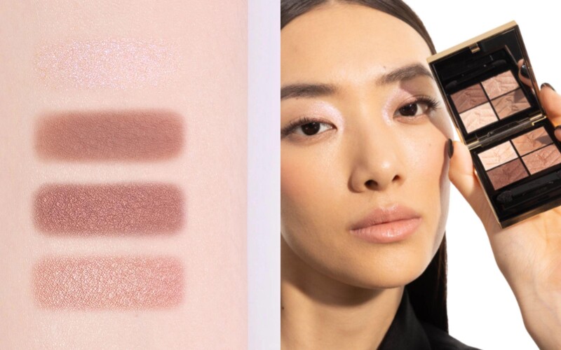 靈感取自星夜的色譜變化,這盤眼影牌將流星劃破夜空後的光暈化作眼妝靈感,打造出柔和又奢華的節慶光感!四色漸層包含香檳金、玫瑰粉金、啞光裸膚、醇厚棕色,可以自由切換從日間的微光閃爍到夜晚的深邃煙燻,一盤搞定所有場合。