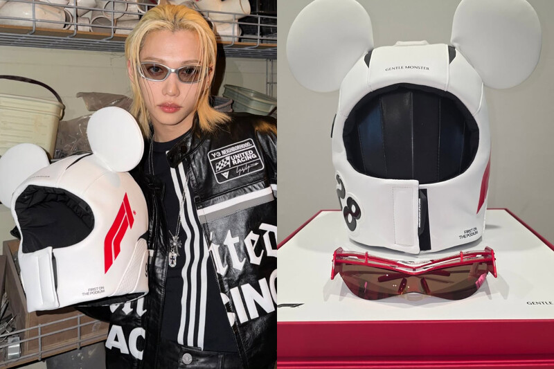 Stray Kids成員Felix(李龍馥)作為Gentle Monster集團的代言人,這回領先全球曝光Gentle Monster x Disney x F1聯名系列。當中最吸睛的莫過於這頂「米奇頭盔」!長出米奇耳朵的賽車安全帽藏著滿滿細節,不僅有米奇的賽車徽標、F1標誌,側邊還有Mickey Mouse的簽名,戴起來真是太帥了!