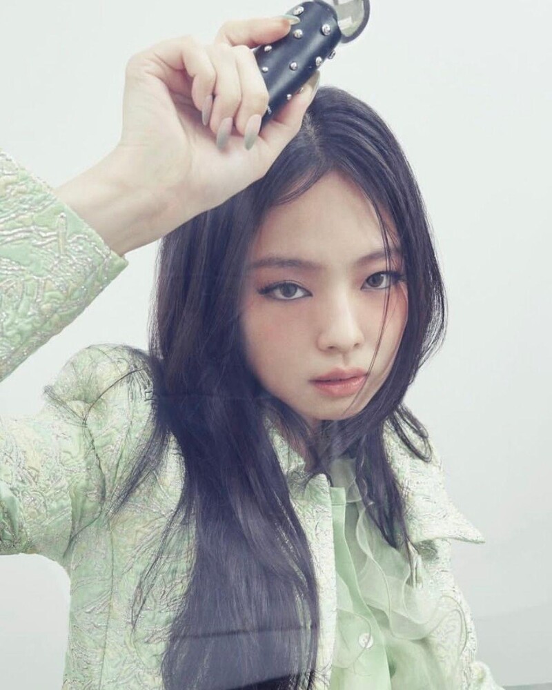 Jennie 是團內最具時尚影響力的存在,「人間香奈兒」的封號不是浪得虛名。她懂得如何在性感與冷冽之間拿捏平衡,霧藍貓眼、珍珠曲線法式,全都展現她那種「俐落又貴氣」的獨有姿態。